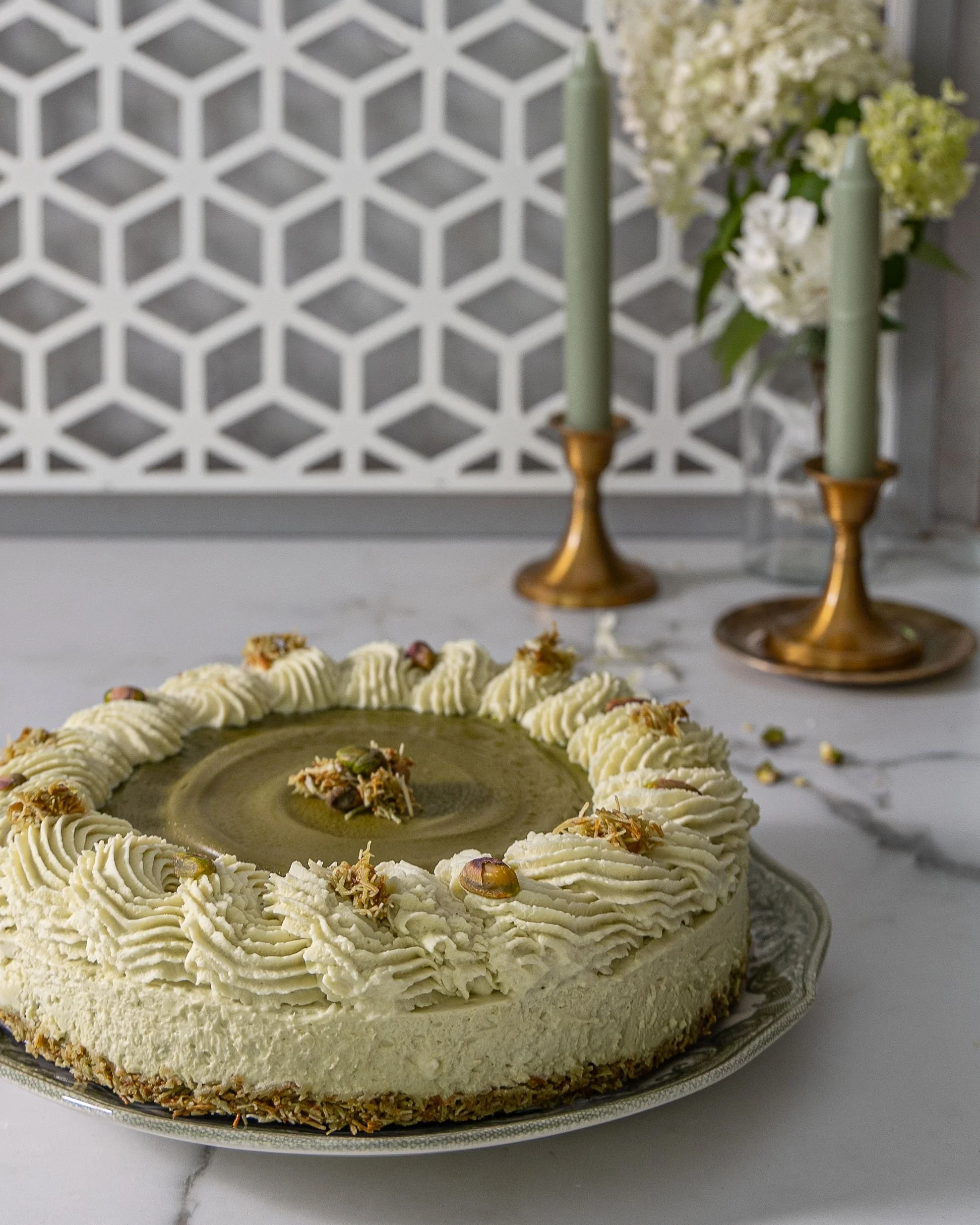 Pistachio kunafe cake